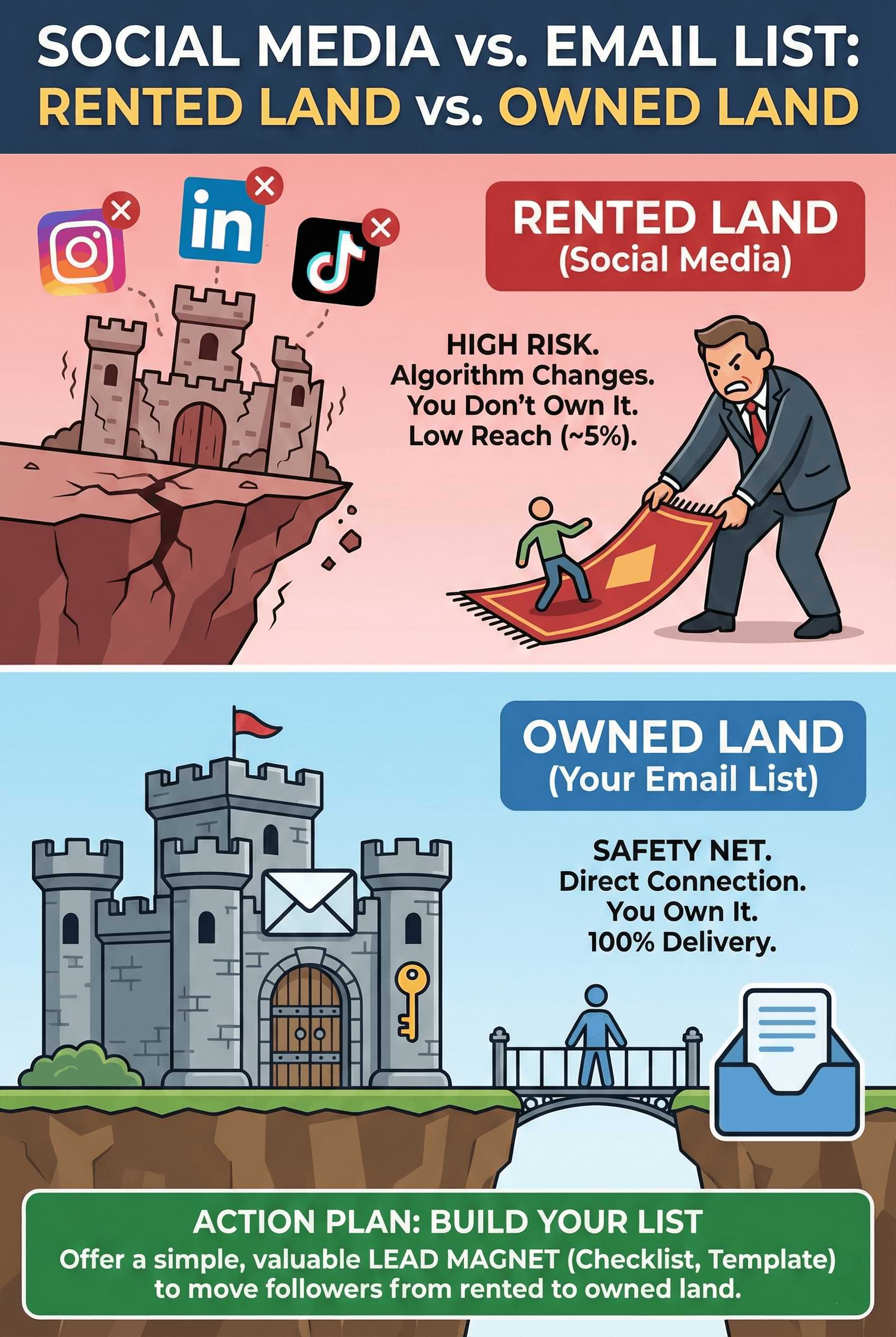 If you want a business that survives the next major algorithm update, you need to prioritize email list building over accumulating social media followers.