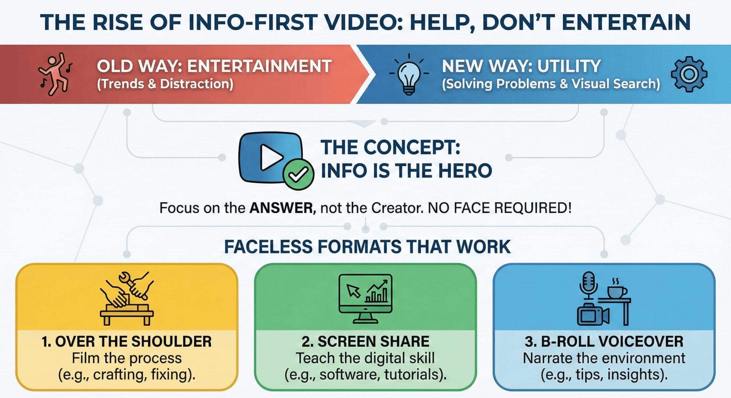Info-First Video is exactly what it sounds like. It is content where the information is the main character, not the creator.