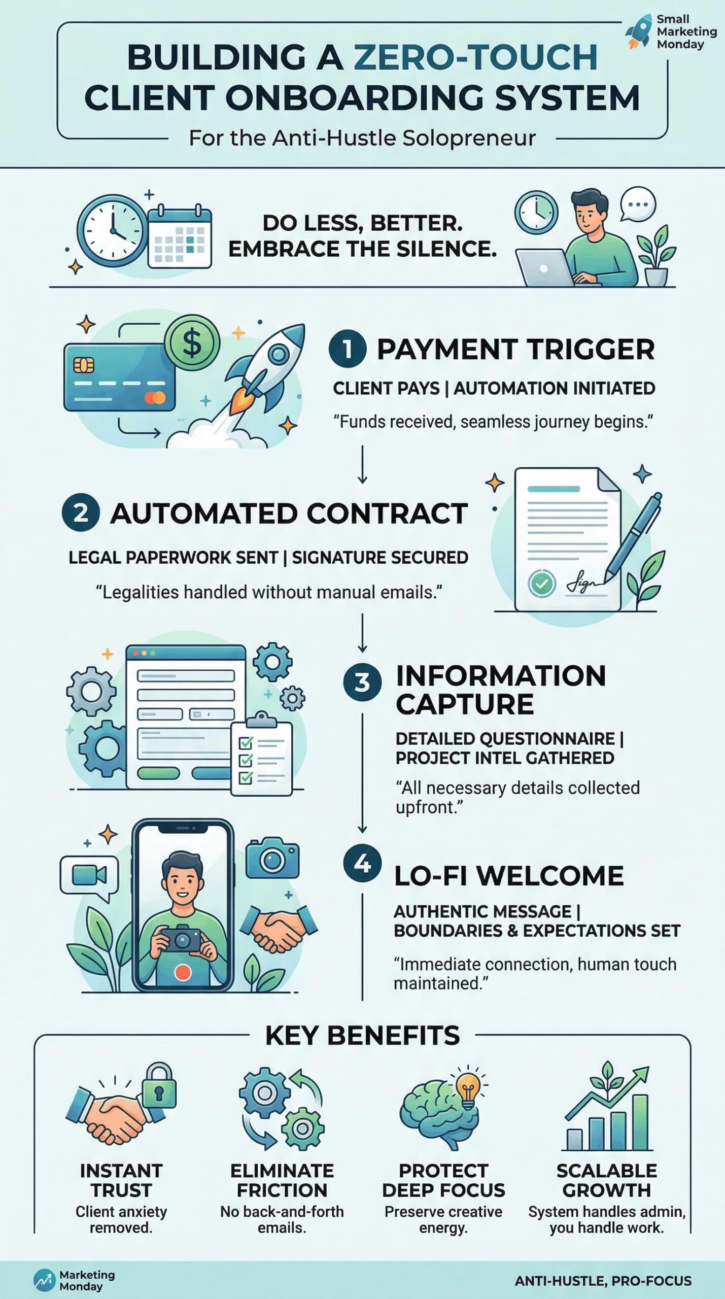 Building a zero-touch client onboarding system isn't about being a robot, it is about creating space for human work that actually matters. Automate the admin so you can elevate the craft. Share on X“Marketing Monday” articles archive.