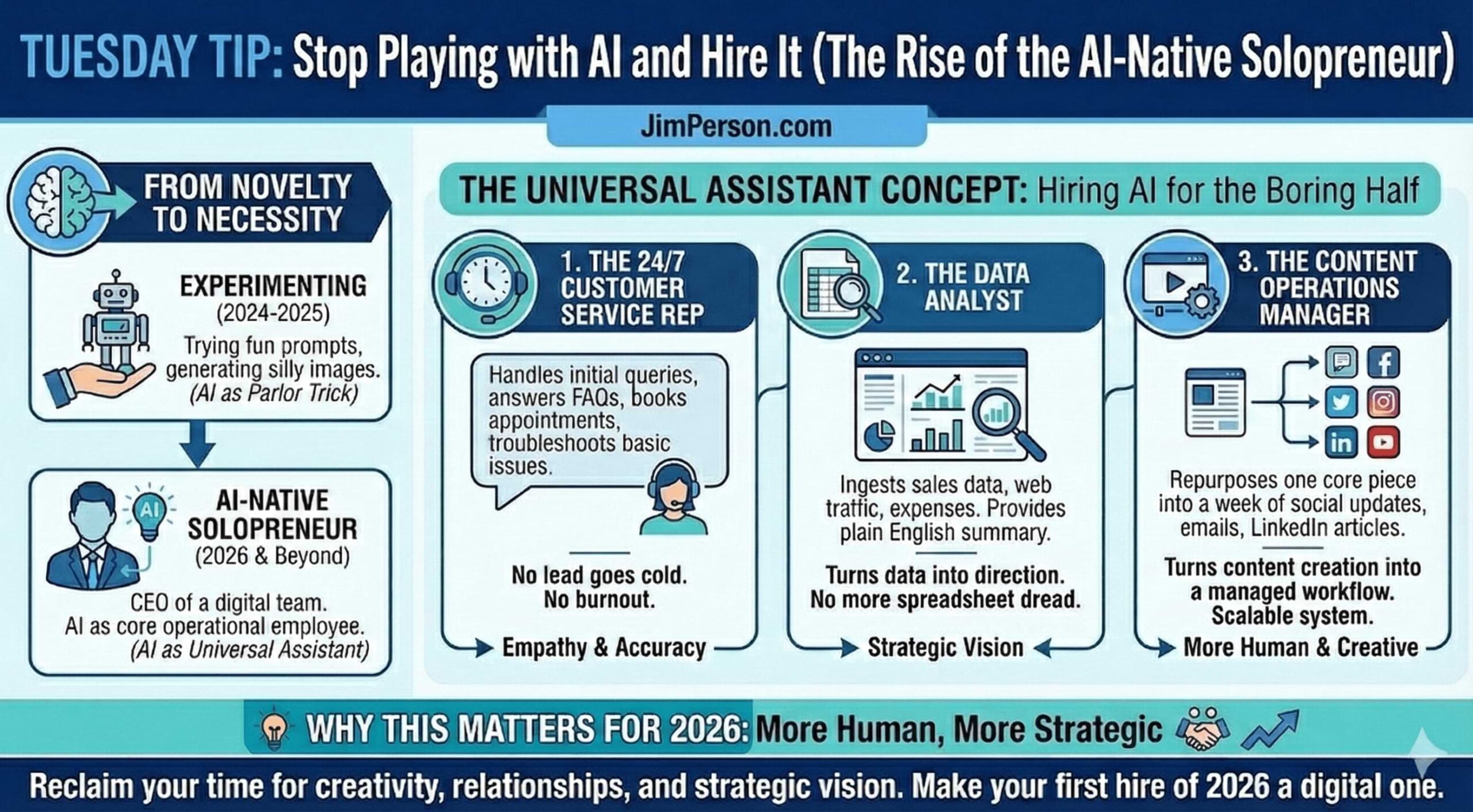 As we stand on the edge of a new year, it is natural to look back at what worked and look forward to what will define the next twelve months. If 2024 and 2025 were the years of “experimenting” with artificial intelligence, trying out fun prompts, generating silly images, or asking it to write a haiku, 2026 is shaping up to be the year of the “AI-Native” solopreneur.