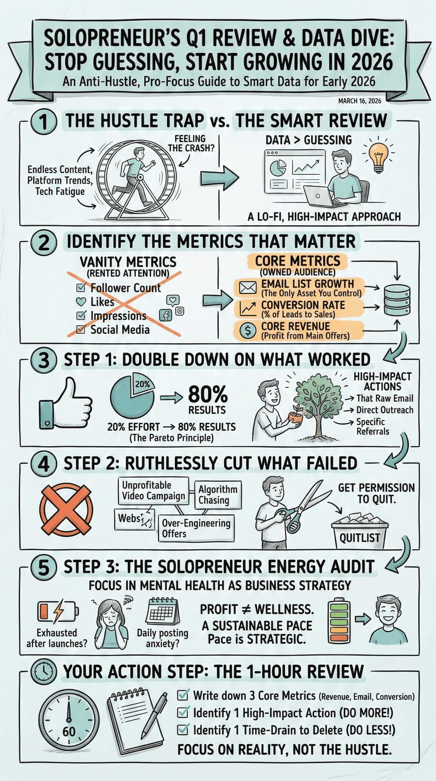 If a marketing strategy is profitable but completely destroys your mental health, it is not a sustainable strategy. You are building a business to support your life, not the other way around. Use this data dive to adjust your pacing. If you need to slow down your content schedule to maintain your sanity in Q2, that is a highly strategic business decision.