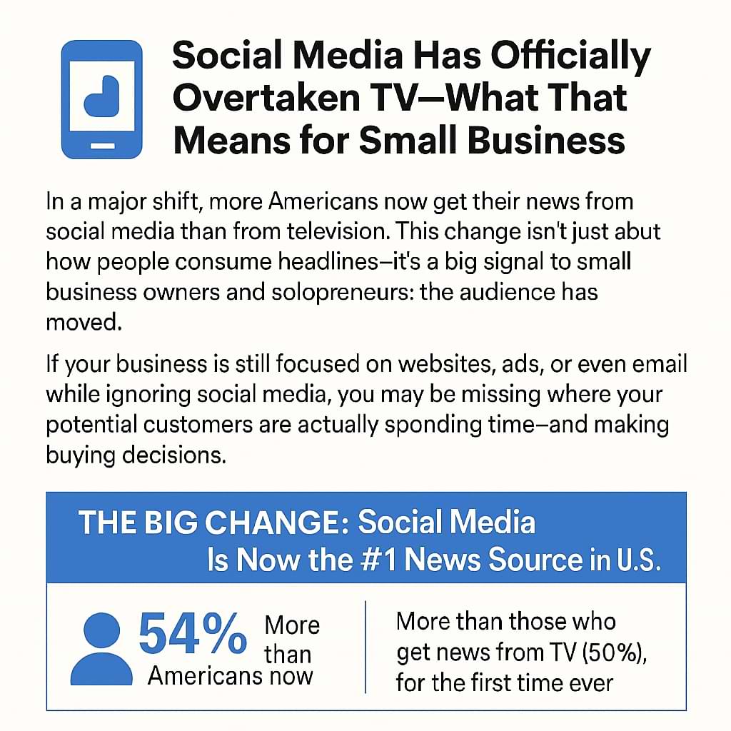 In a major shift, more Americans now get their news from social media than from television. This change isn’t just about how people consume headlines—it’s a big signal to small business owners and solopreneurs: the audience has moved.
