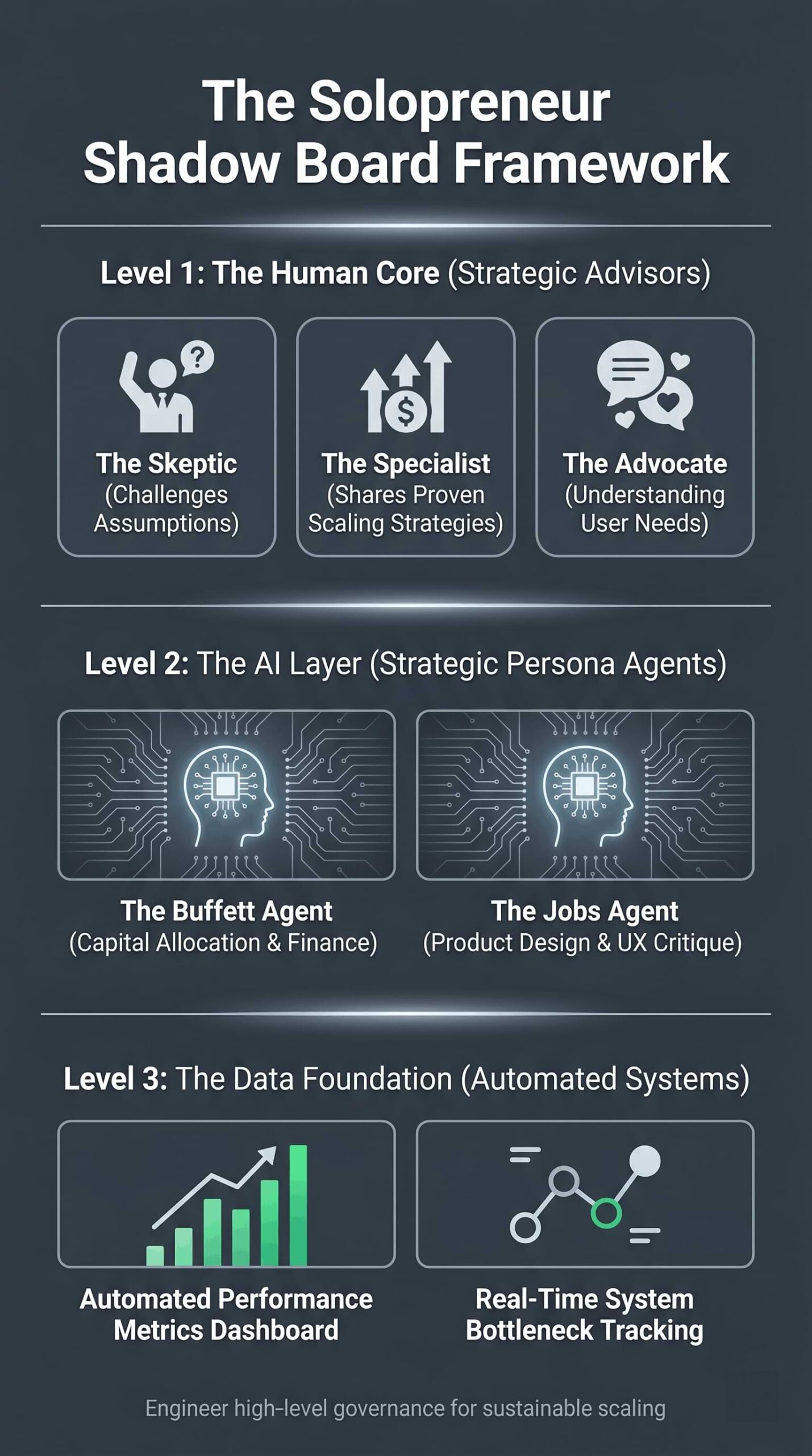 Strategic isolation is the primary barrier to sustainable scaling for solo operators in the modern economy. By implementing a shadow board, a curated group of human advisors and specialized AI agents, solopreneurs create the necessary friction to stress test their systems and eliminate cognitive bias.