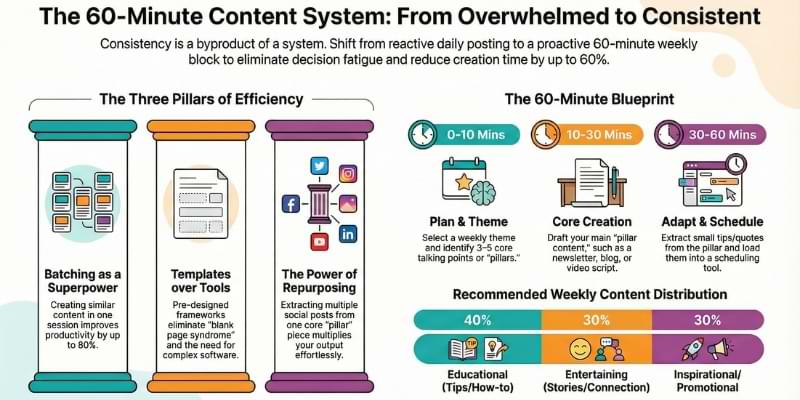 - The 60-minute system is repeatable: Once established, your weekly content routine becomes automatic and stress-free