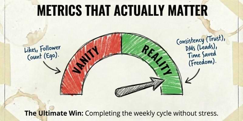 The most important metric? Consistency. If you’re completing your 60-minute session weekly and publishing regularly, you’re already ahead of 80% of your competitors.