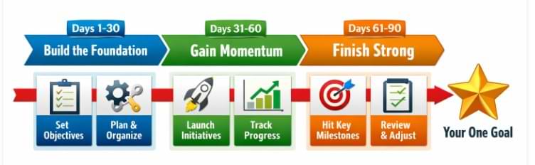 - Break your single goal into three 30-day phases: build, grow, and finish strong.